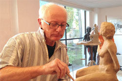 Samstag und Sonntag arbeiteten die Künstler bis 18 Uhr an einer Sitzenden Figur mit leichter Drehung im Oberkörper. Die Arbeitsstimmung war hoch konzentriert und produktiv.