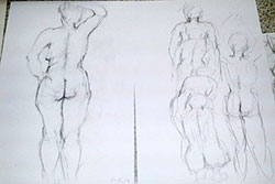 Nach Weihnachtsferien und Mitgliederversammlung griffen die Kontrapostler wieder zu Bleistift und Kohle und versuchten sich erneut im Naturstudium am menschlichen Körper. Nach mehreren Bewegungsskizzen wurde der Strich nach der relativ langen Pause lockerer, so sind ganz gute Zeichnungen entstanden. Unser Dank gilt dem Aktmodell!