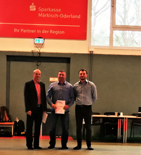 Der Präsident des BJV, Daniel Keller, und der Leiter der Abteilung Judo im KSC Strausberg e.V., Jürgen Teichmann, überreichten ihm die Verleihungsurkunde des BJV und ein Sieger-T-Shirt des KSC. Die Auszeichnung kam für den Sportfreund Pühlhorn überraschend. Wir wünschen ihm weiterhin alles Gute und viel Erfolg in seinem Schaffen für den Judosport in der Region.
