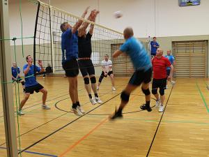 Die Gäste aus Chodziez hatten es im folgenden Spiel gegen die Männer des KSC-2 (Senioren 50+) relativ leicht. Technisch und körperlich überlegen, ließen sie den „älteren Herren“ keine Chance und gewannen beide Sätze (25:6. 25:7). Da beide Teams des KSC ihre Spiele verloren hatten, musste eine Vorentscheidung im Vergleich zwischen den Volleyballern aus Chodziez und Mühlenberg fallen, die sich im 3.Spiel gegenüberstanden. Beide Teams, eingespielt und technisch versiert, schenkten sich nichts. Im ersten Satz zogen die polnischen Volleyballer mit 20:25 den Kürzeren. Im folgenden 2.Satz drehten sie den Spieß um und gewannen mit 25:18. So musste wieder im Tiebreak die Entscheidung fallen. Hier fanden die Volleyballer des SV Mühlenberg schneller und besser ins Spiel und gewannen gegen die unerwartet schwächelnden Polen mit 15:7.